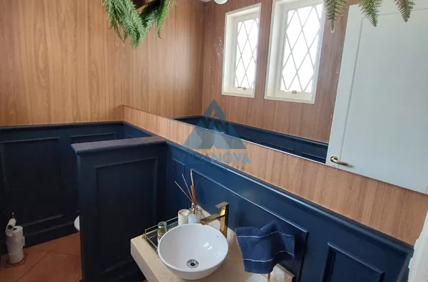 O imóvel possui 5 banheiros ao todo, oferecendo praticidade e comodidade para todos os ambientes da casa.